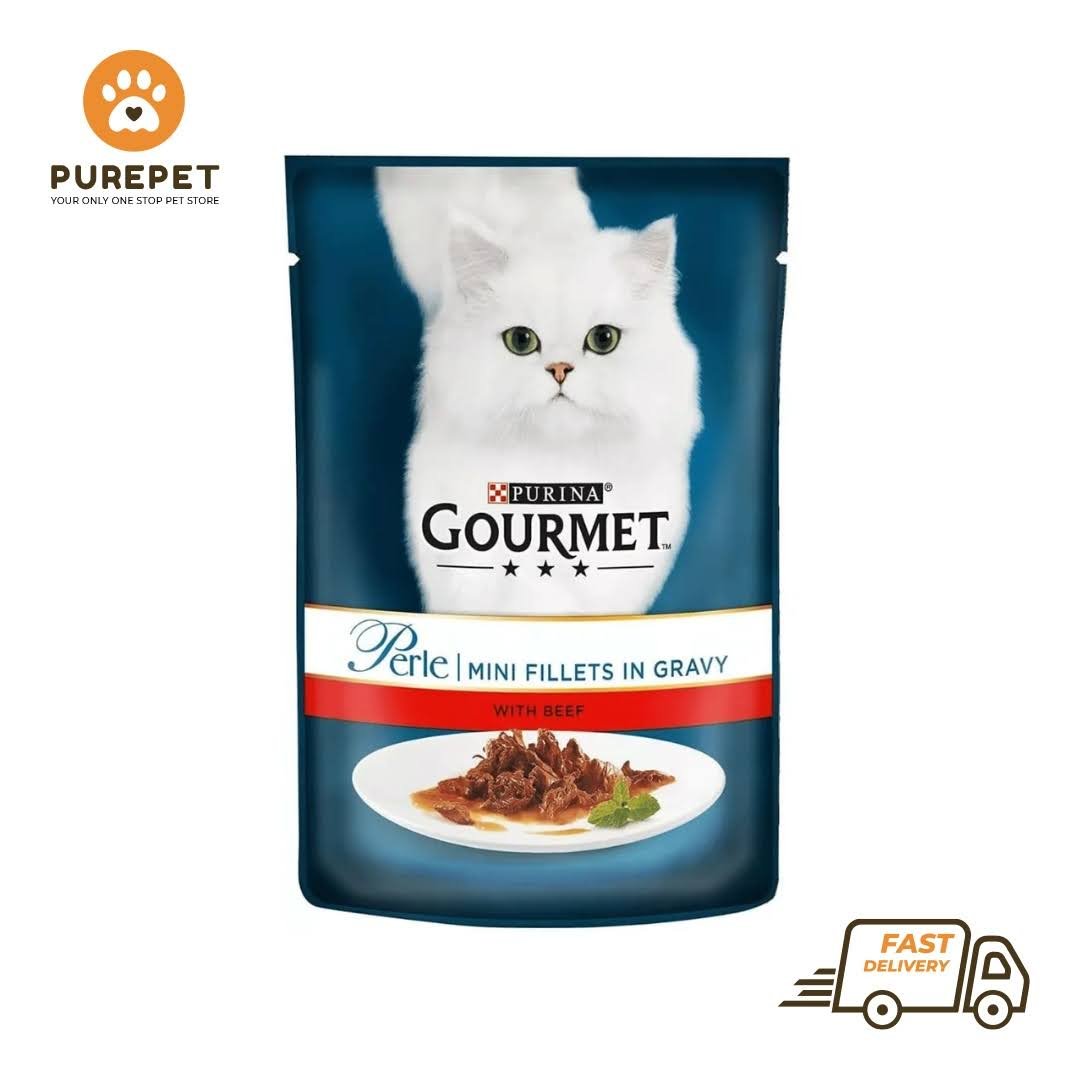Gourmet Perle Fillets in Gravy is a delicious gourmet meal that includes tender chicken in a rich sauce. It provides a balanced diet and a tasty flavor for your cat. The delicious taste and premium ingredients provide a luxurious and nutritious dining experience for your cat.