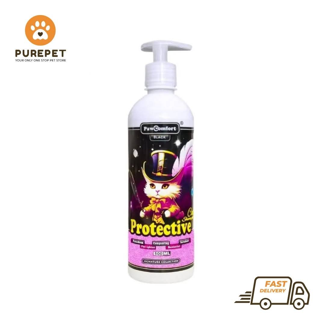 Paw Comfort Black Shampoo Protective for Cats is available in 500 ml bottles from the Signature Collection. This Tea-Tree oil and AVC blend is perfect for your cat to maintain their hygiene and provide deep cleansing. This product is gentle, long lasting, and suitable to all breeds. Give your cat what they deserve by ordering now.