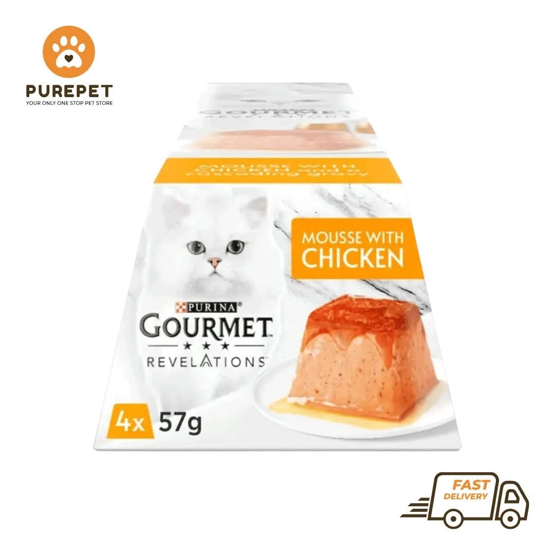 Purina gourmet revelations mousse with chicken combines an opulent, soft mousse and balanced nutrition to create a meal both delicious and healthy for your pet.