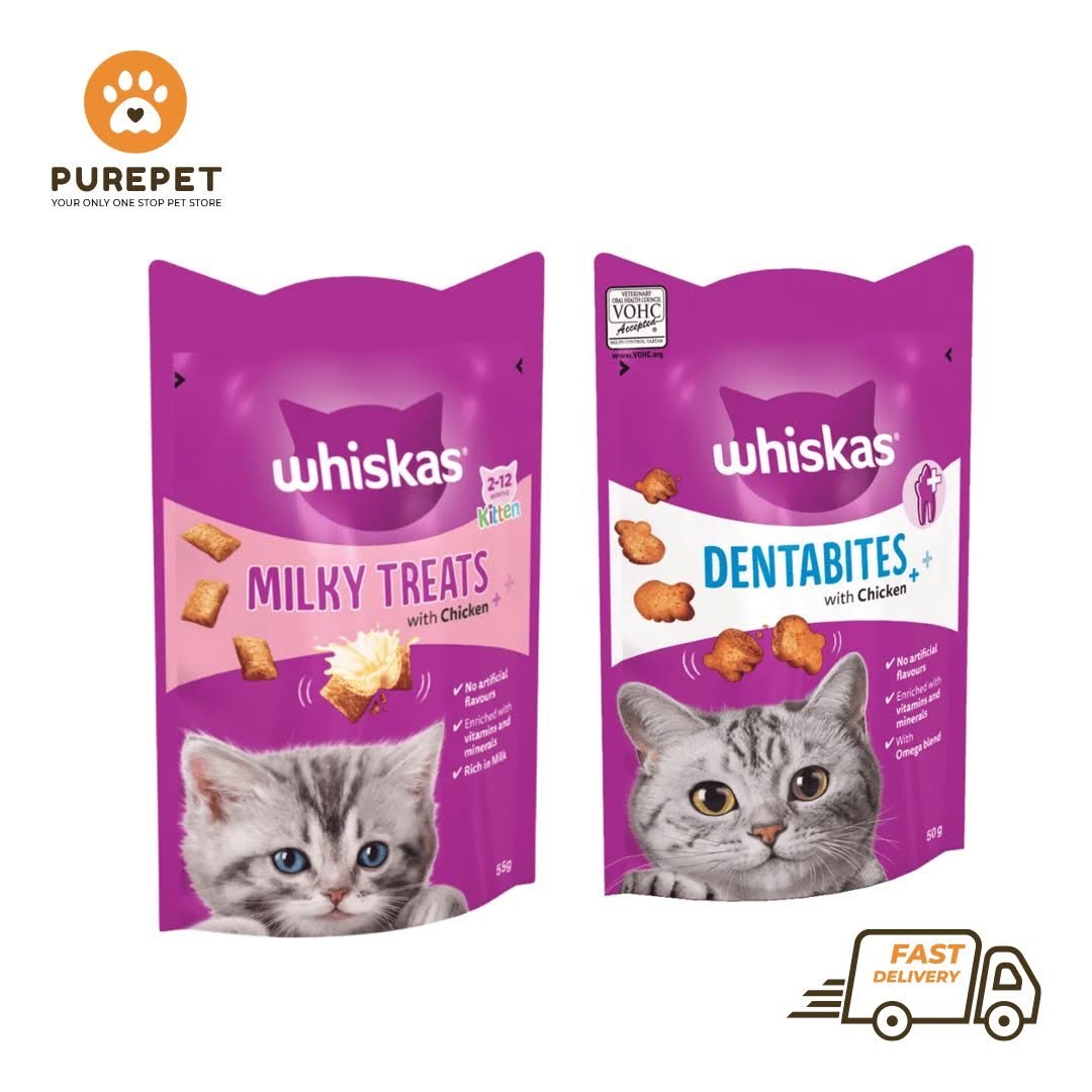 Whiskas is a dry treat that contains essential nutrients like vitamins, minerals, protein, and more to promote your cat’s general health and well-being. Every bit is packed with goodness for your pet to thrive. They will have a shiny, healthy coat, strong muscle and an optimal digestive system.